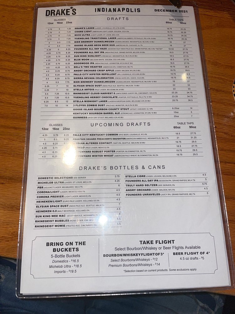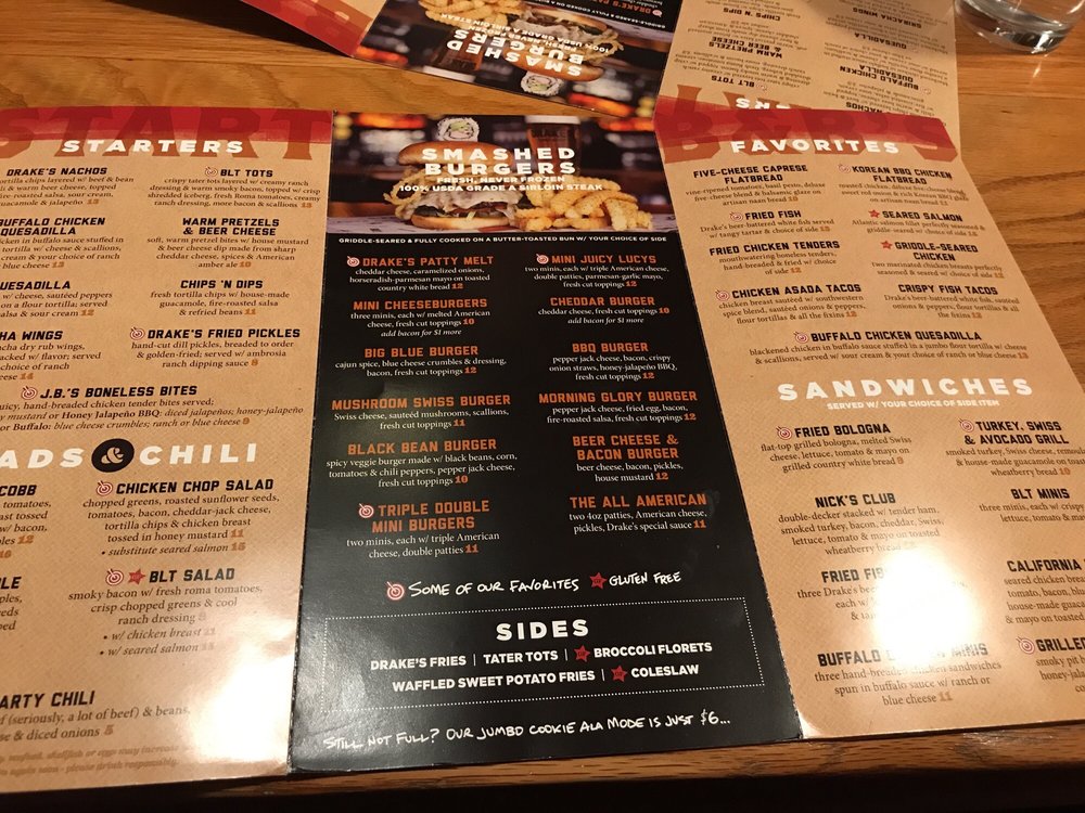 Drake’s - Indianapolis is a versatile dining spot that caters to a wide range of preferences. From juicy Lucy sliders to sushi appetizers, there is something for everyone to enjoy. The BLT Salad and Fried Fish sandwich are popular choices, while the Miso Soup and Sushi Rice cater to those with a taste for Japanese cuisine. The restaurant offers a casual atmosphere with various amenities like outdoor seating, free Wi-Fi, and a full bar. Customers have praised the generous portions and flavorful dishes, with highlights including the turkey, Swiss, and avocado grill sandwich. Whether you're looking for a quick bite, a happy hour spot, or a place to dine with friends and family, Drake’s has you covered with its diverse menu and friendly service.